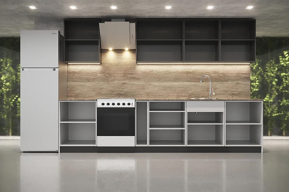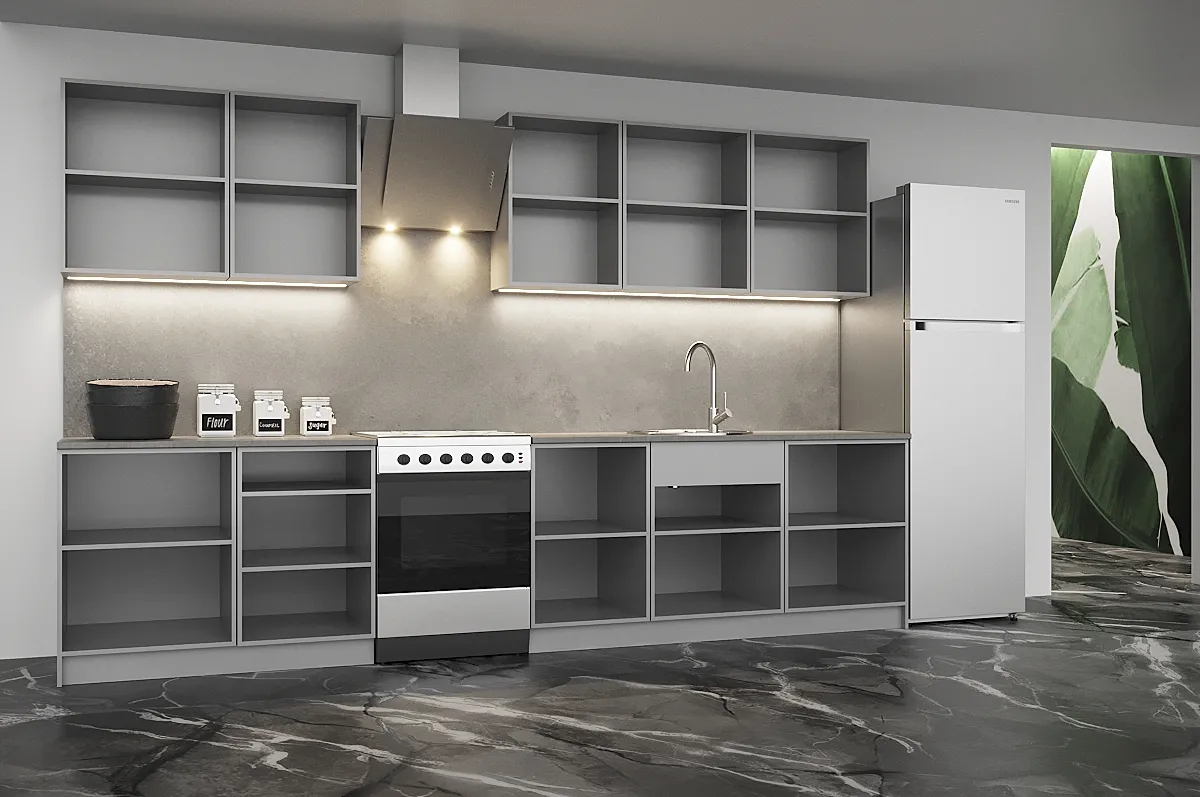 Модульные кухни - это готовые решения в наличии на нашем складе, которые состоят из отдельных корпусов разных размеров, а так же фасадов разных цветов и фактур. Из этого множества компонентов вам необходимо выбрать те модули, которые подойдут вам по размеру и дизайну или воспользоваться услугами нашего замерщика.